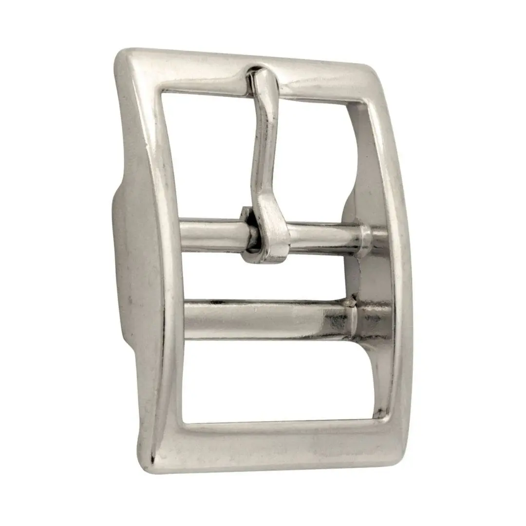 Full, square shaped, Nickle double bar buckle. Width in measured via the center cross bar