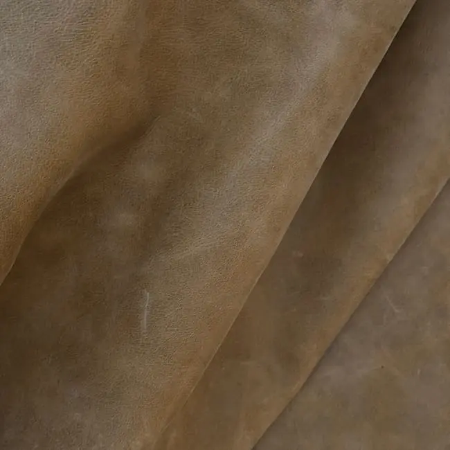 Natural aniline hides are designed to age, wear, fade and polish to develop character and patina over time. These are high quality leathers for the antiques of the future. This product is aniline leather; it will fade in UV, scratch, and shows all the hides natural markings. This range is heavily distressed and shows the natural beauty of leather hides – scars are prominent.